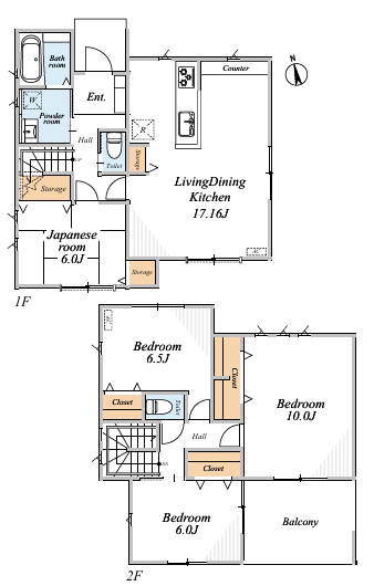 | 間取内容 | LDK17.1畳 1階 和室6.0畳 1階 洋室10.0畳 2階 洋室6.5畳 2階 洋室6.0畳 1階 |